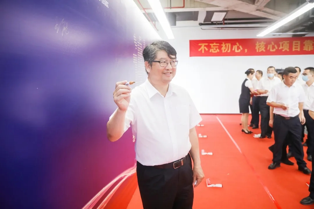 ▲王能在新一代系统群建设项目投产仪式签名墙上签名